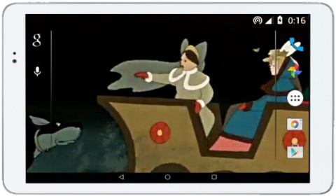 In the forest snowdrops. Winter. Royal Palace. The young Queen are classes. The Professor talks about the seasons, and when he mentions about the spring snowdrops, the Queen says she wants to immediately have them in the Palace. The Professor tries to convince her that it's in January it's impossible, but the Queen issued a decree, where the promises for the flower basket, the same basket of gold. Greedy Stepmother and her lazy Daughter, after learning about the Royal award, immediately sent her Stepdaughter to the forest for snowdrops.